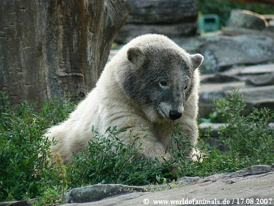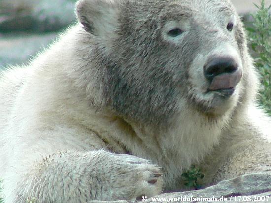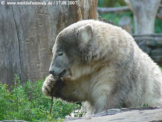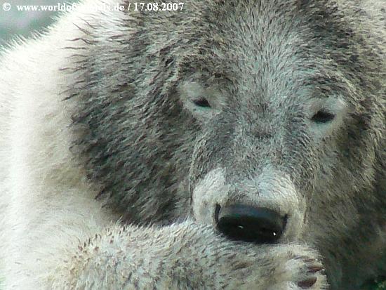 He was sucking and nuckering at his right paw very often and long at evening. I heard that this is normal, but I remember to other informations, that it isn´t normal for a eight month old polarbear. All did begin at monday this week.