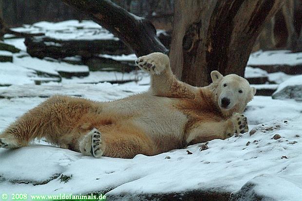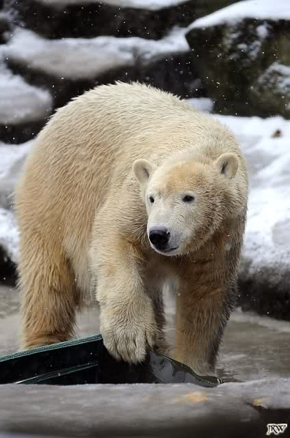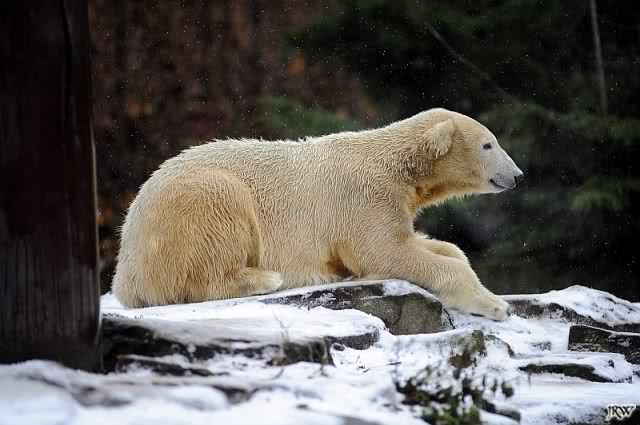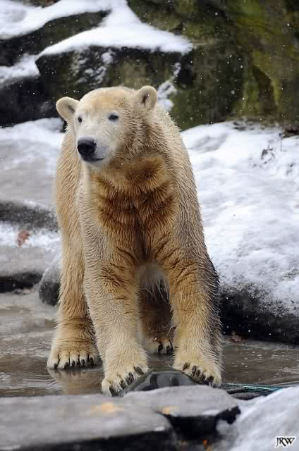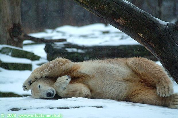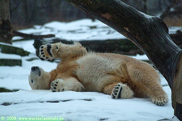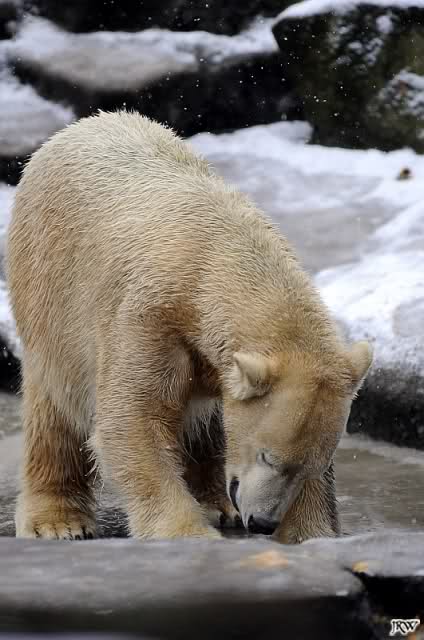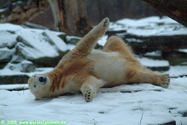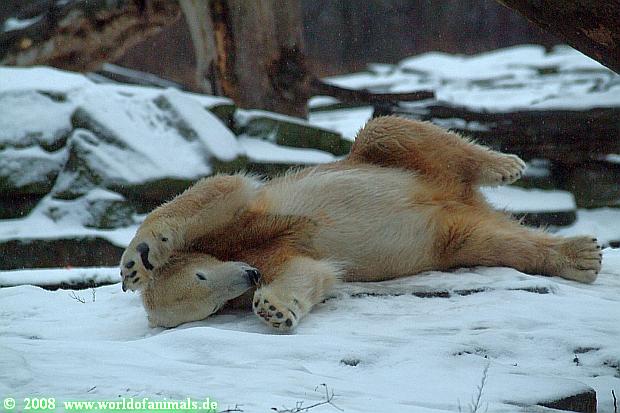 Es war ein nasskalter, trüber und ungemütlicher Sonntag. Trotzdem waren wieder viele Besucher im Zoo. Ich war ab 13:30 h im Zoo. Knut lief auf der Anlage hin und her. Die Fütterung war auch schnell vorbei, aber danach wurde Knut zu einem richtigen Eisbären, der sich im Schnee wälzte und total happy war. Fotos davon gibt es jetzt.