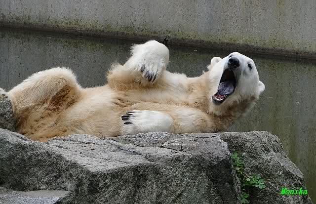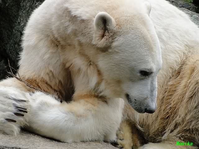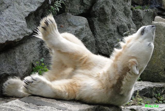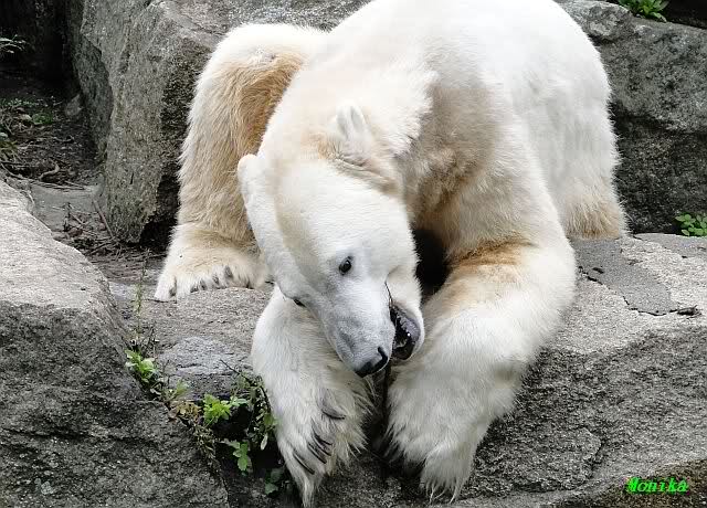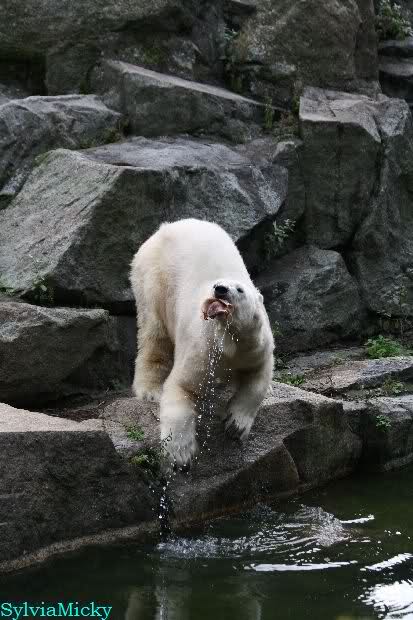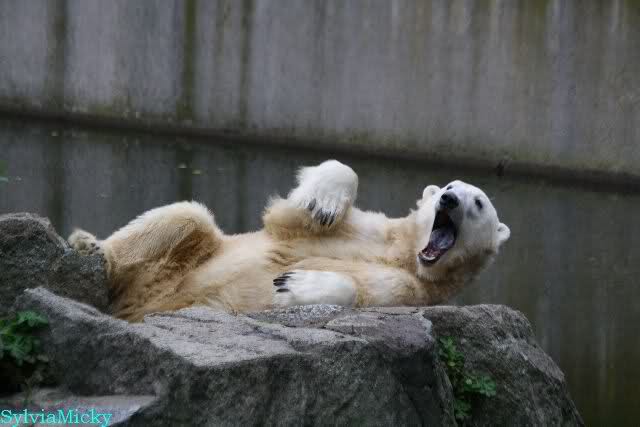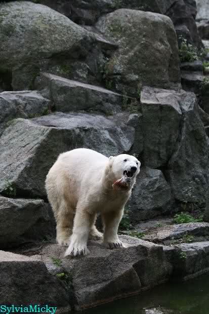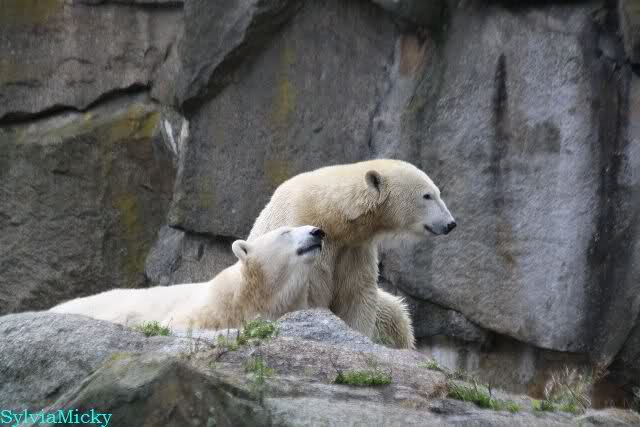 Knut, was habe ich gestern geschrieben? Auf die Felsen sollst du hauen nicht auf die Bärinnen. Okay, so schlimm sieht es eigentlich nicht aus. Laut und ernsthaft Brummen hilft ja auch, schafft Respekt. Und bloß nicht Rückwärts gehen...