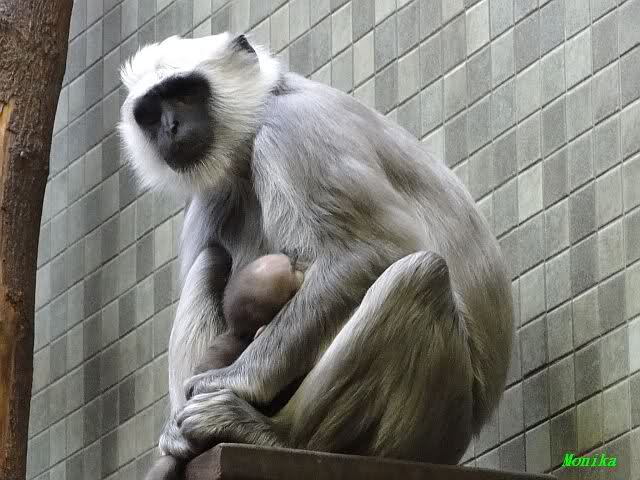 Am 04.10.2010 gab es wieder Nachwuchs im Affenhaus. Diesmal bei den Hulman`s. Die Mama wollte aber das Kleine nicht so recht zeigen.