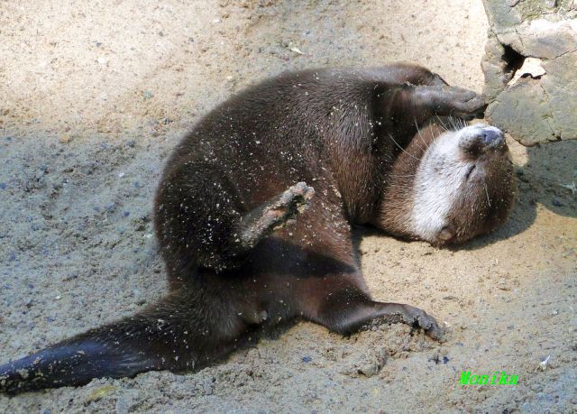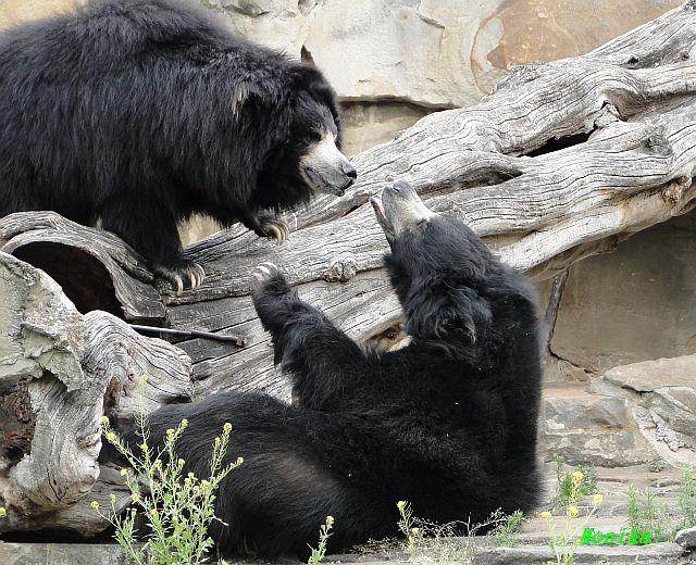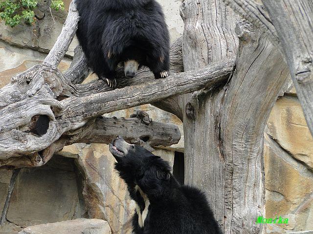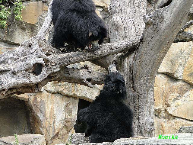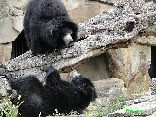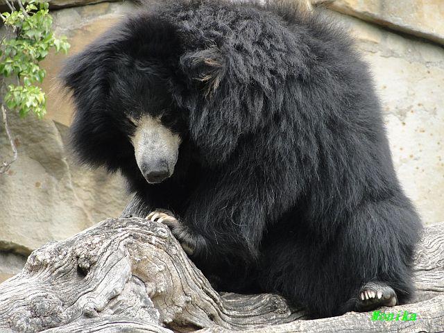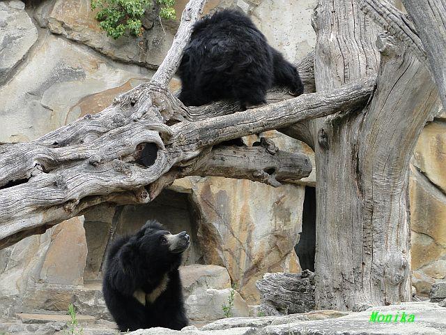 Bei den Malaienbären lag Maika vorn auf der Anlage. Sie hatte ihren Kopf auf ihre gefalteten Tatzen gelegt. Eine Stirnfalte war über ihre Augen gerutscht, so dass sie aussah wie eine Nonne im Gebet.
