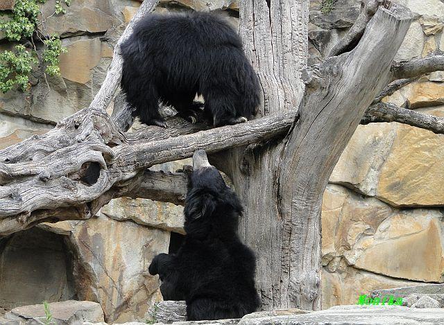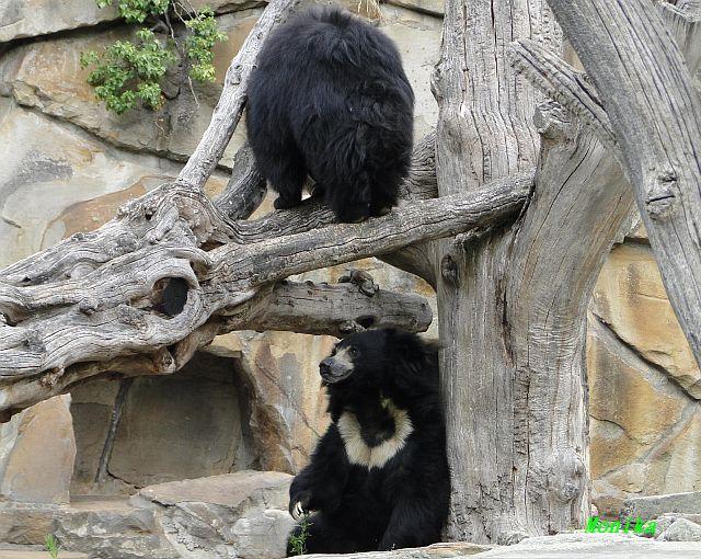 Zum Abschluss wollten wir noch einmal sehen, was denn unsere drei Eisbären-Schönheiten machen. Deshalb drehten wir nochmals eine große Runde. Dabei statteten wir auch dem Streichelzoo sowie Maburi und Kigoma einen Besuch ab. Die beiden präsentierten sich zunächst sehr fotogen nebeneinander; vorn der Sohn, dahinter die Mutter. Aber kaum hatte ich die Kamera draußen, schon drehten sie mir beide den Hintern zu! Ich bin wohl nicht zur Fototante berufen…