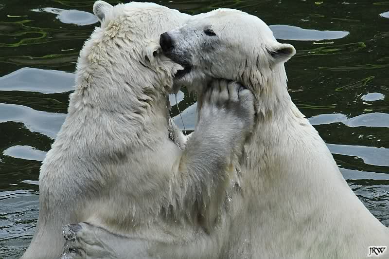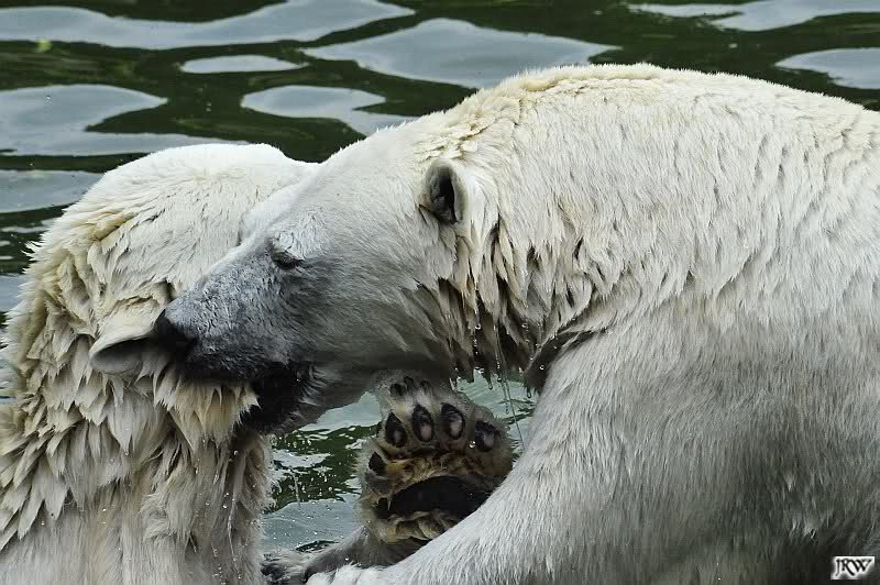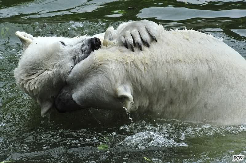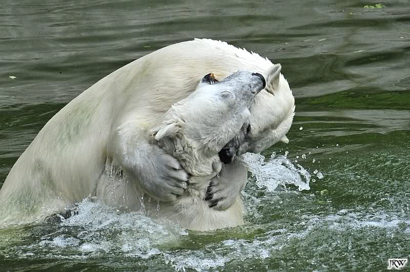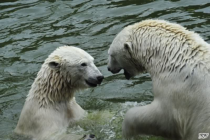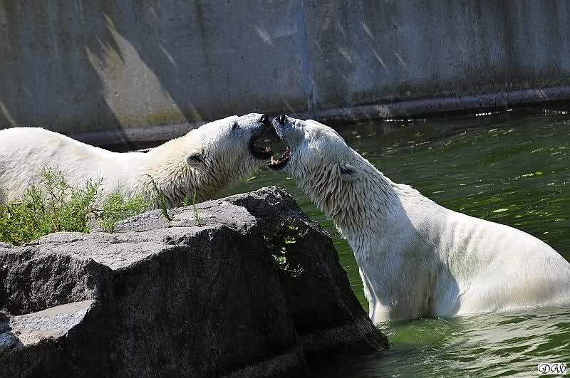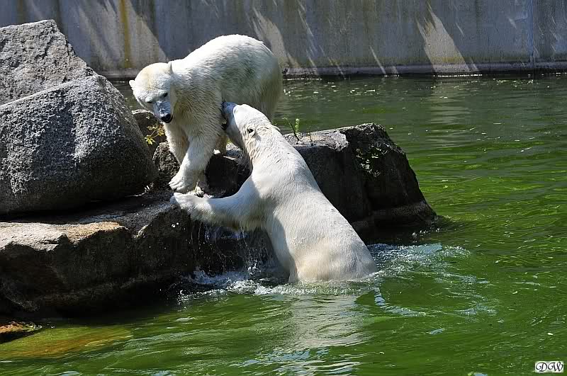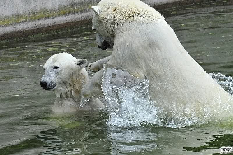 Sind die großen Eisbären zu alt zum Spielen? Natürlich nicht. Sie spielen jeden Tag mindestens zweimal zusammen. Entweder zwei oder alle drei. Wie grausam wäre es, sie zu trennen und ihnen die Lebensfreude zu nehmen.