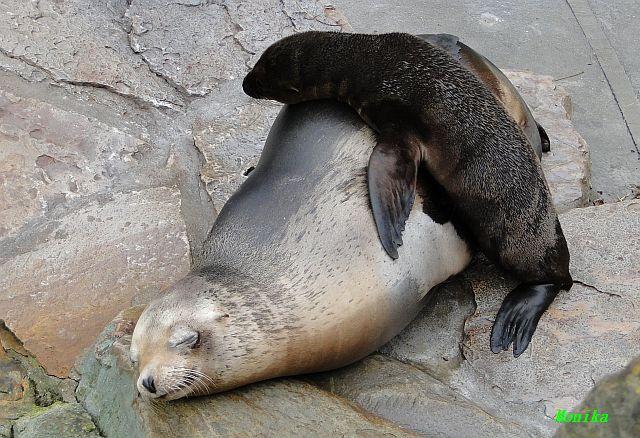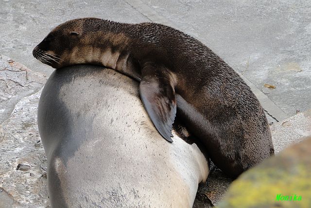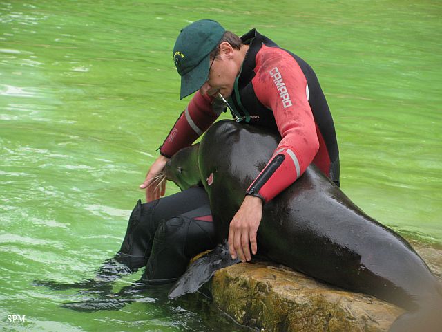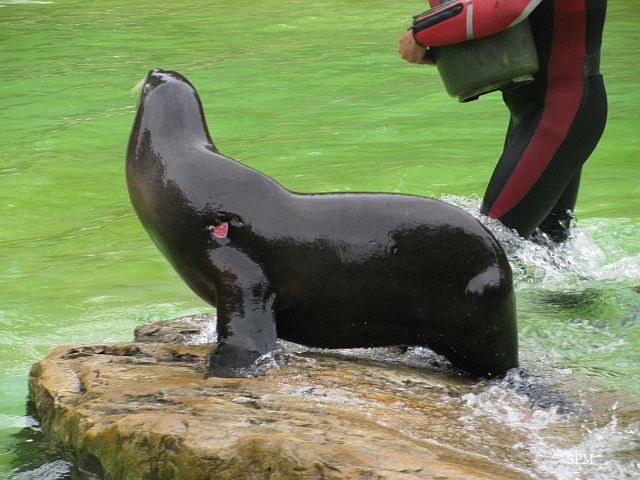 Die beiden Seelöwenmädchen, Gina und Amanda, waren heute wieder auf der Außenanlage. Die Beiden wurden am 06.06.2010 geboren. Auch das Männchen Enzo war mit draußen.
