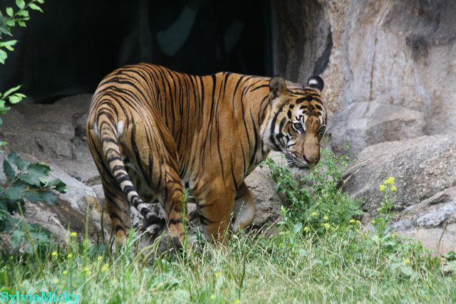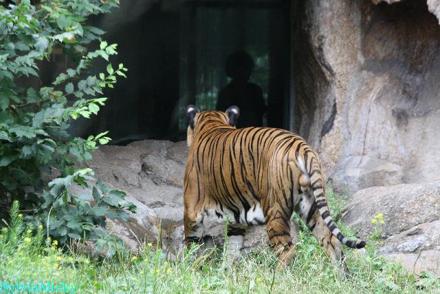 Der Tiger betrachtete die Besucher und sie ihn