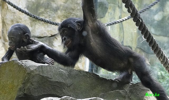 Die kleinen Bonobos Kivu und Likemba verstehen sich prächtig.