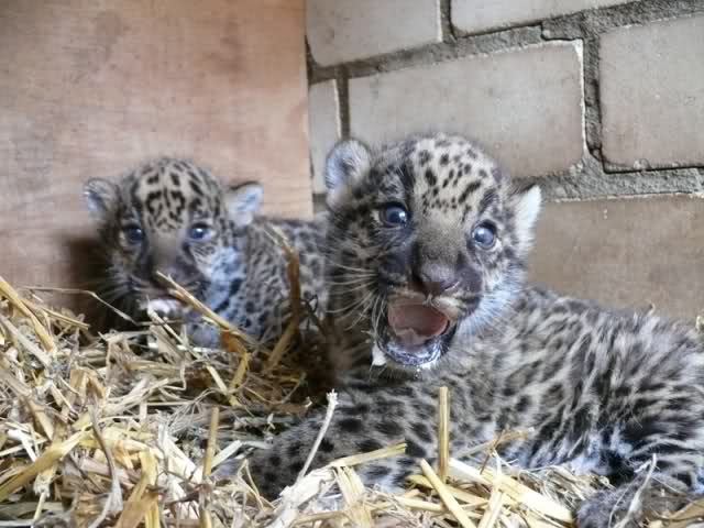 Noch zahnlos, aber dafür ganz schön frech zeigten sich die beiden Babyjaguare im Krefelder Zoo bei ihrer Entwurmung. Der erste Nachwuchs bei den Jaguaren im Krefelder Zoo nach 17 Jahren ist gleichzeitig der erste Nachwuchs des neuen Jaguarpaares. Der kleine Kater und die Katze kamen vor knapp drei Wochen zur Welt. Die beiden gefleckten Jungtiere werden von ihrer dreijährigen Mutter „Bess“ vorbildlich versorgt. Noch hat der ebenfalls dreijährige Vater „Porgy“ seinen Nachwuchs nur durch ein Schmusegitter in Augenschein genommen. Jaguare sind Einzelgänger und der Kater beteiligt sich in der freien Wildbahn nicht an der Aufzucht der Jungtiere.