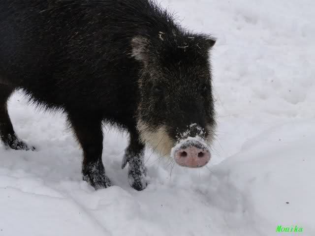 Ein einsames Pekari steckte seine "Steckdose" auch in den Schnee