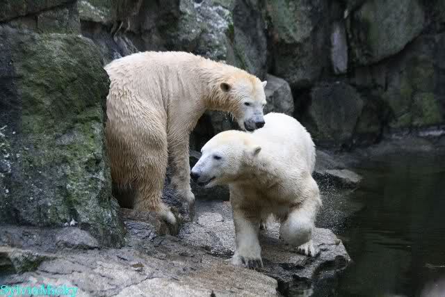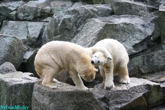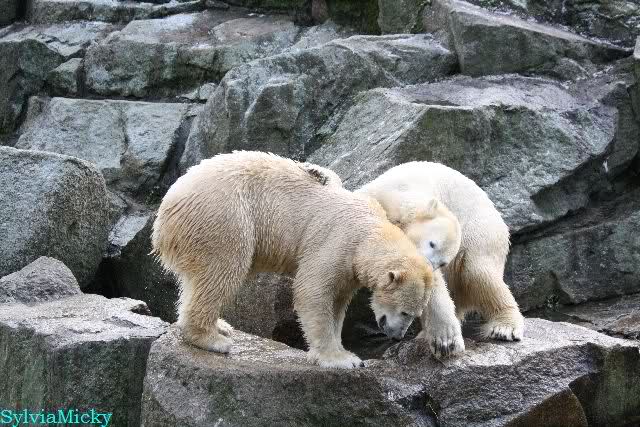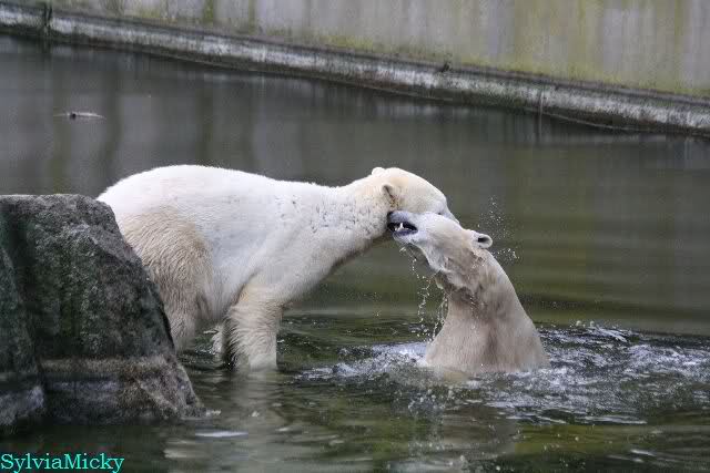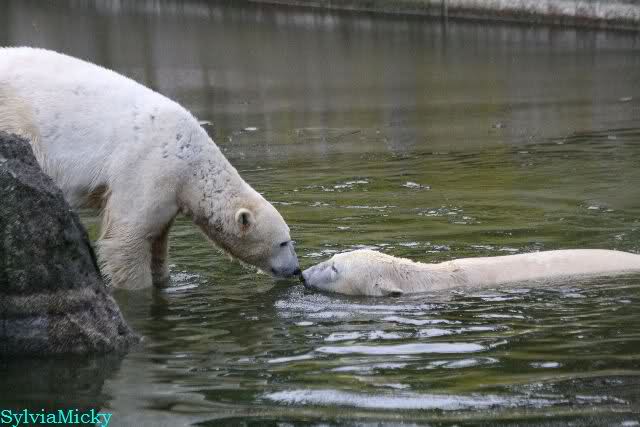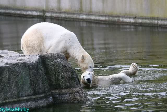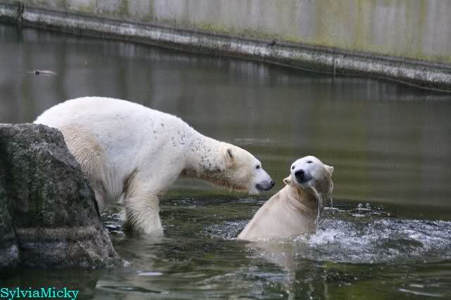 Knut spielt mit Toska, Essen genug und Doris auch wieder im Zoo. Danke Syilvia für diese Information, dann kann der Tag ja gut zu Ende gehen.