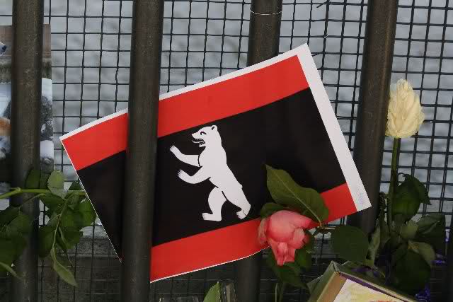Auch heute waren wieder viele Menschen am Gehege und legten Blumen und Briefe hin. Auch viele Zeichnungen von Kindern waren darunter.