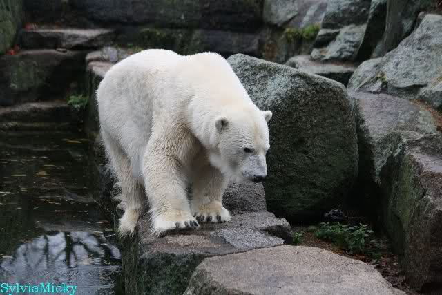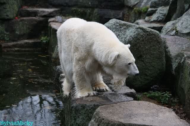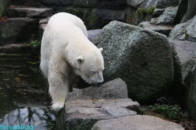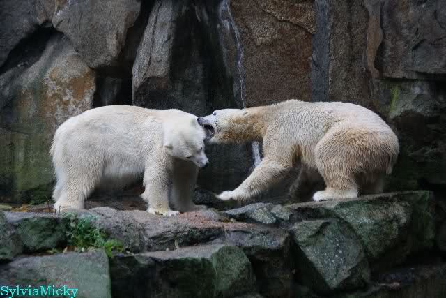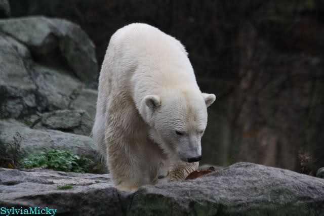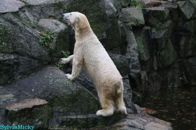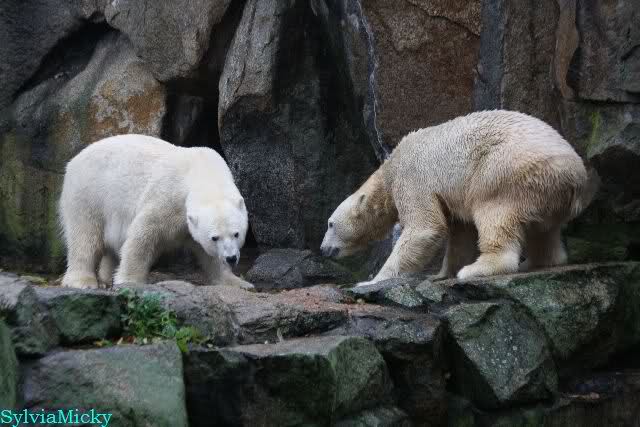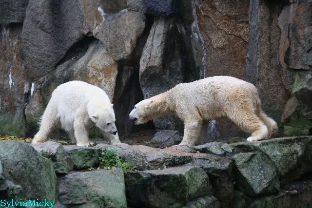 hat sich etwas an der seit langem andauernden Situation zwischen den Eisbären Weibchen und dem Eisbären Knut verändert oder kann man Letzteren immer noch am Rande des Felsens beobachten, wie er den Kontakt zu den Artgenossen scheut?