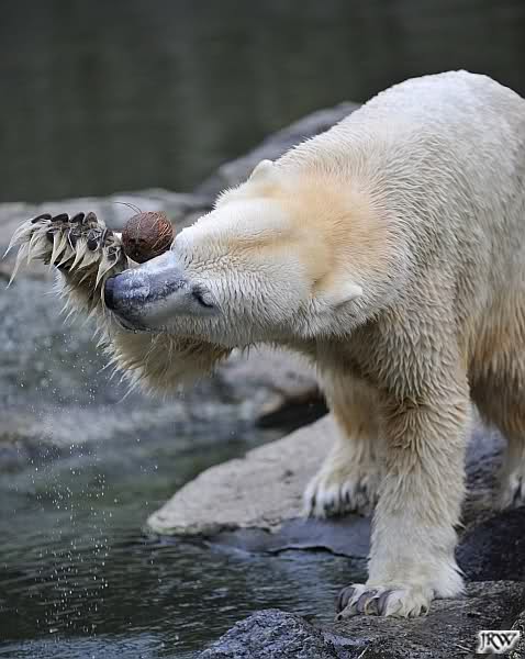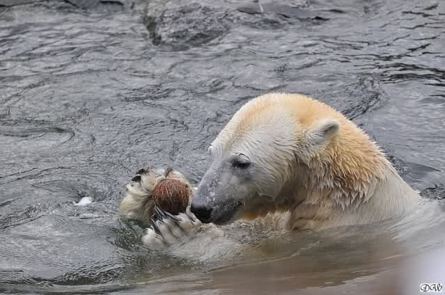 Wieviel Freude ein Bär mit einer Kokosnuss haben kann... die Fotoserie zeigt uns einen zufriedenen Knut. Danke Doris für die schönen Fotos.