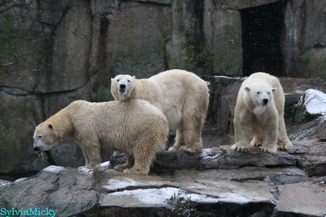 Am Nachmittag liefen alle drei Bären zu der rechten Seite. Sie hörten Devi jammern. Sie wurde kurz raus gelassen und wollte wieder rein.