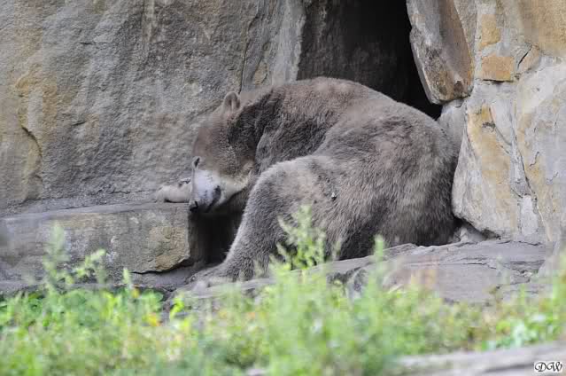 Nach der Abendfütterung kam Knut wieder heraus und sah nicht so gut aus. Er schien schwer zu atmen und war generell schläfrig. Hoffentlich ging es ihm nachher wieder besser. Als wir ihn verließen, lag er immer noch dort, es war kurz vor 19.00 Uhr und Zeit zu gehen.
