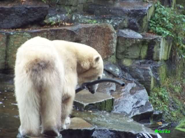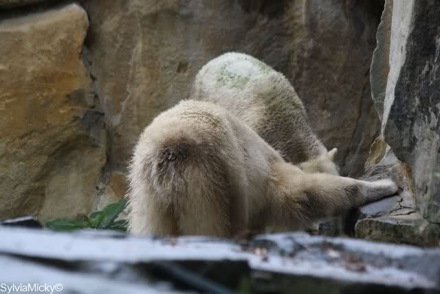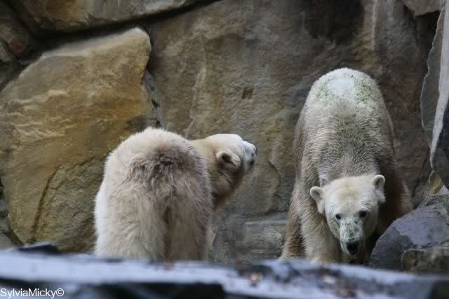 In der Bären WG im Zoo scheint ja von Tag zu Tag mehr Akzeptanz zu herrschen. In kleinen Schritten geht es ja voran. Schön, das Giovanna Knuts Spielzeug entdeckt hat, Pech für Knut. Inzwischen lernt er ja auch die Verteigung.