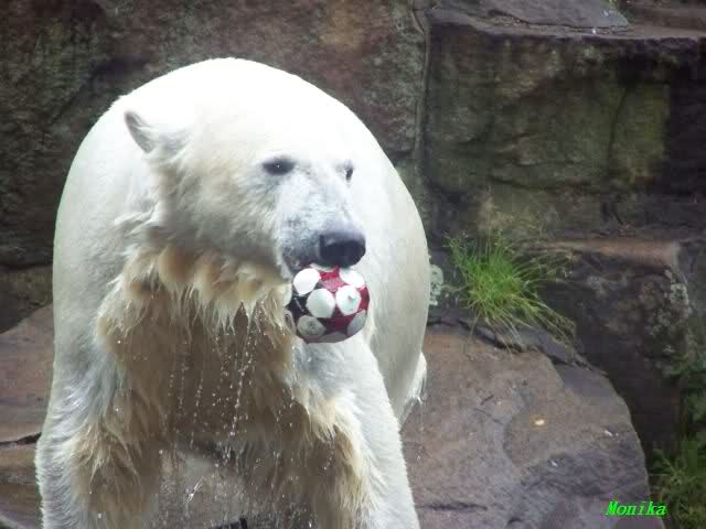 Ich finde die Bilder, wo Knut fuer sein Fressen "Maennchen" machen muss, garnicht schoen, eher sehr traurig. Da muss dieses stolze Raubtier jeden Tag fuer sein Fressen 'Faxen' machen. Artgerecht? Mehr oder weniger wie ein Zirkustier. Armer Kerl ist besser.