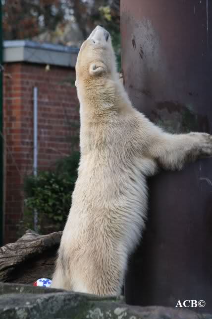 Als ich heute kurz vor Mittag bei Knuts Gehege eintraf, waren aber dort noch drei andere Damen mit dem gleichen Leiden; Knutitis. Sonst war der Zoo um diese Zeit ziemlich leer. Ich nehme mal an, dass mehr Pfleger als Besucher im Zoo waren.