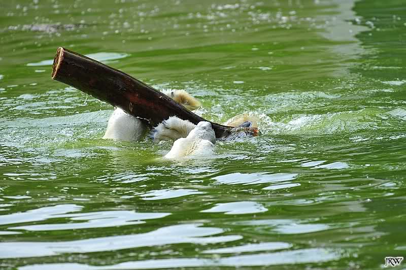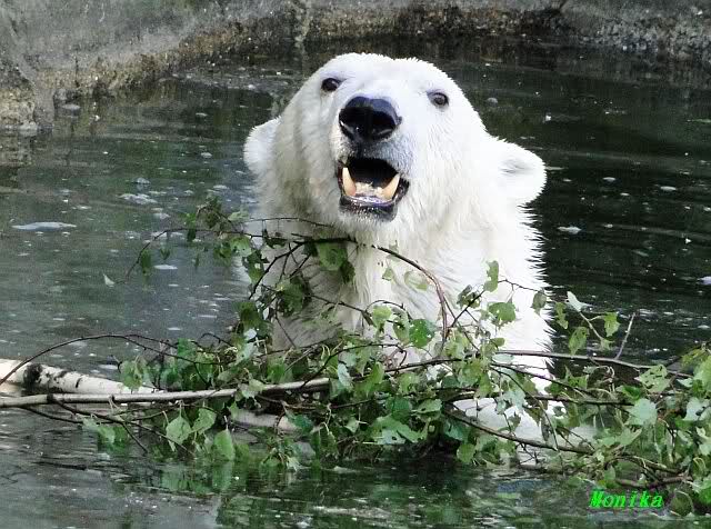 Sylvia, wie schön, dass Tosca heute wieder ins Wasser ging. Allerdings habe ich gerade den Nachmittagsbericht gehört. Tosca lief wieder und Kati schlief in der Höhle. Auf einmal raste Tosca unvermittelt nach oben, brüllte die schlafende Kati an und griff ihr an den Hals, gingnach unten und lief weiter. Später spielte Nancy erst allein im Wasser und dann zusammen mit Kati. Sie angelten nach den Zweigen an der mauer. Tosca unterbrach ihren Lauf und brüllte. Danach lief sie weiter. Nach 17:00 legte sie sie hin und schaute Kati und Nancy zu. Was mit Tosca los ist, kann ich nicht beurteilen. Merkwürdig ist es jedoch. Tosca war bislang die spiel- und kontaktfreudigste Bärin.