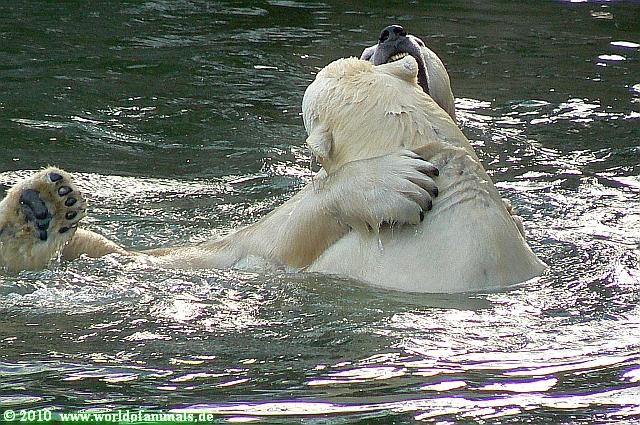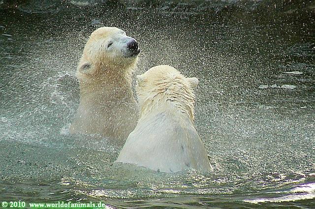 Hello to you all Knut & Co friends around the world at the end of Christmas. I was in Zoo at afternoon and got the chance watching polar bears playing in water: Tosca and Knut. Enjoy my Knut pictures from today too.