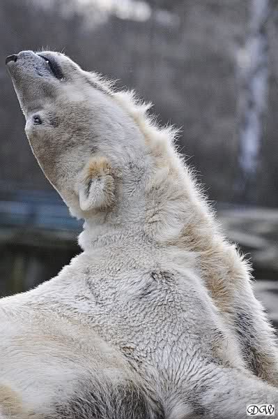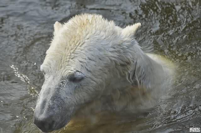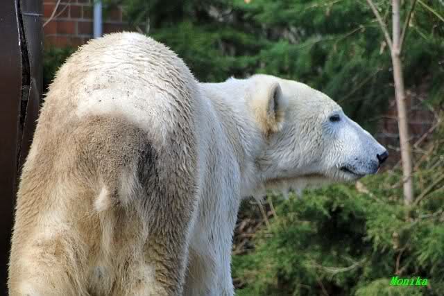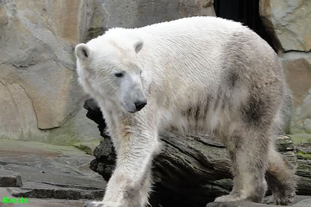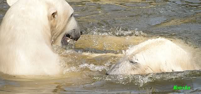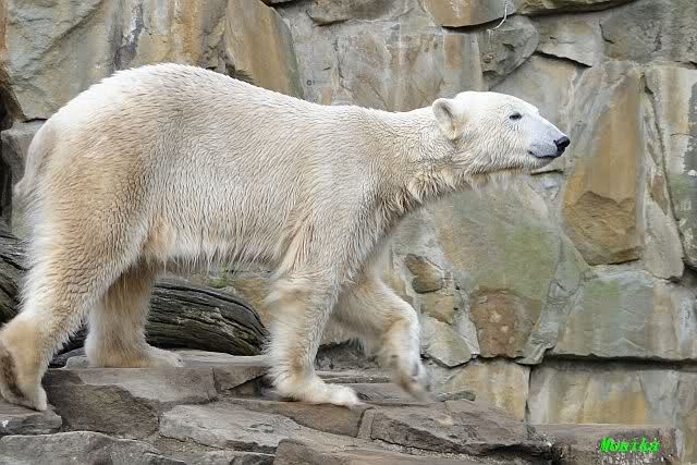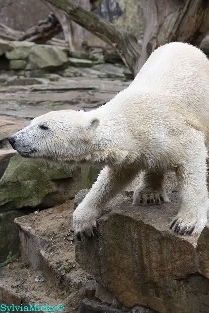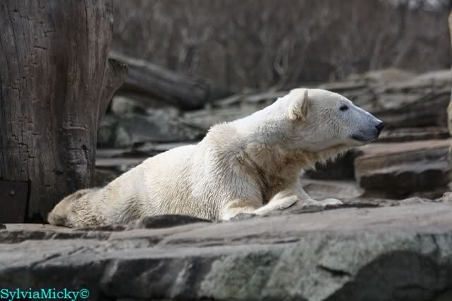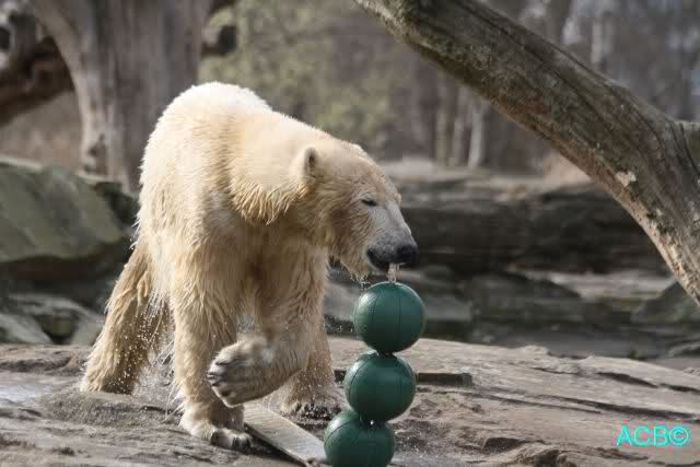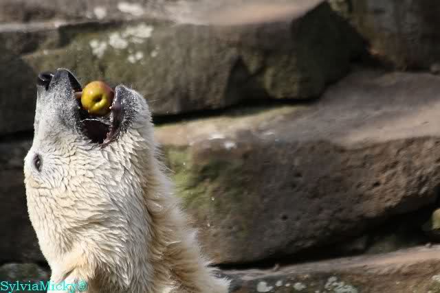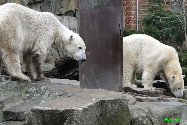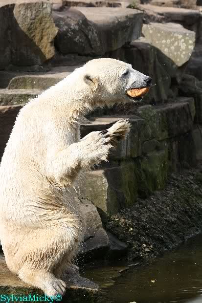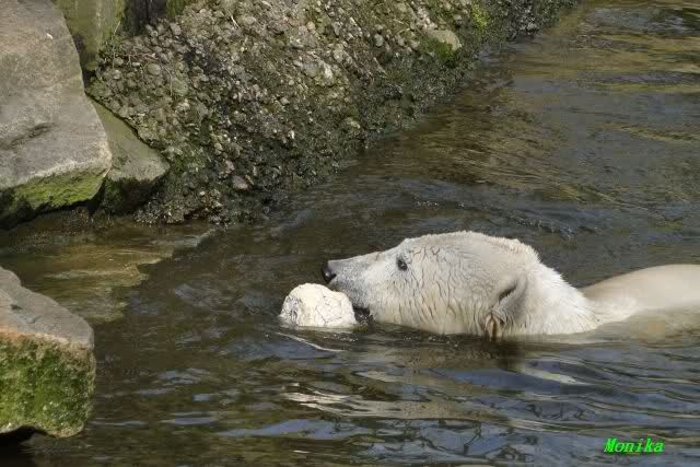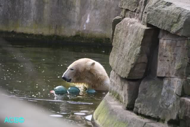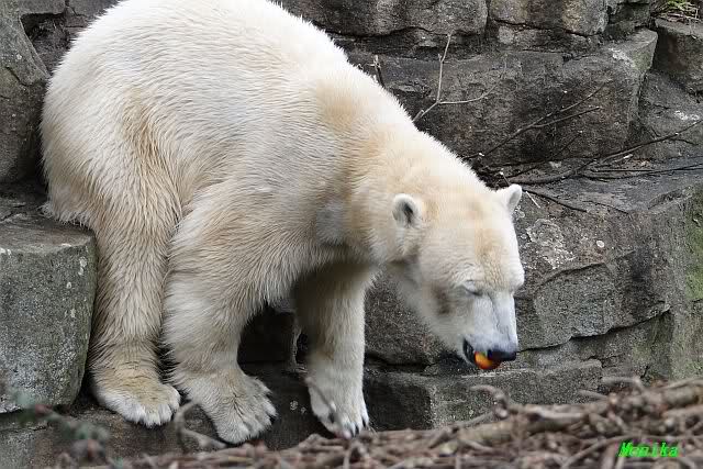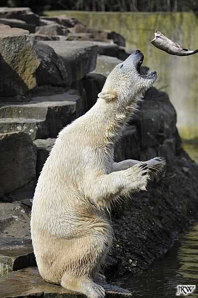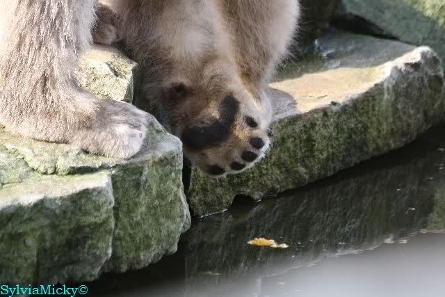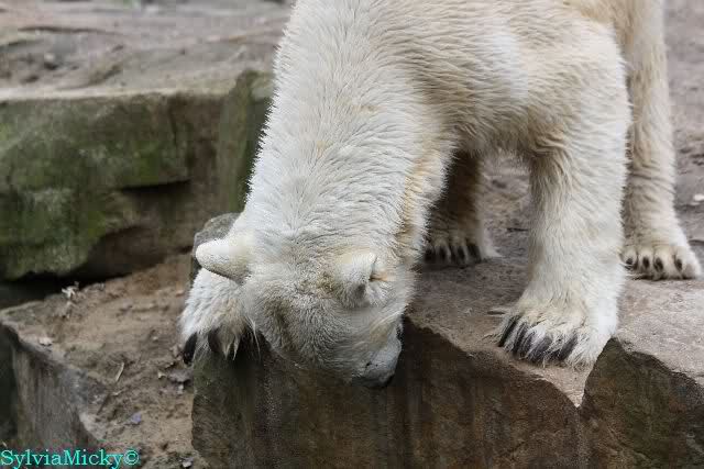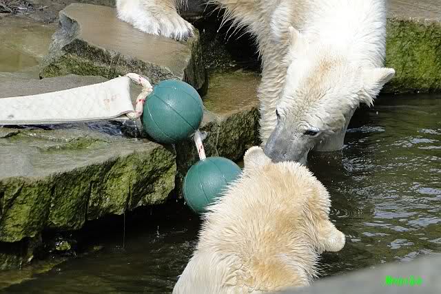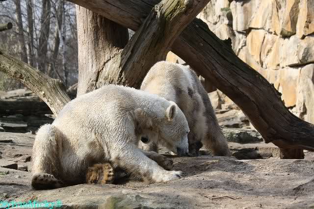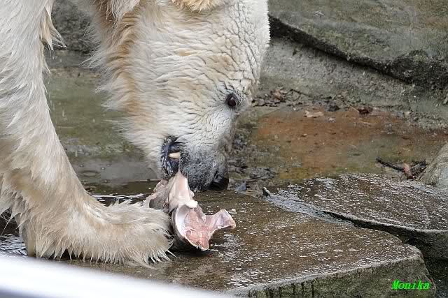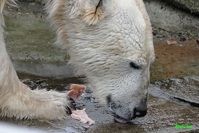 Ich war nur kurz bei der Fütterung von Knut am Gehege und die meiste Zeit bei den großen Eisbären. Auch heute gab es Lachs.