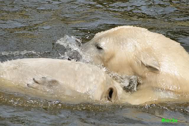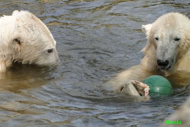 Knut und Gianna müssen heute Morgen schon im Wasser gespielt haben, denn als ich heute früh kam, hatten beide noch nasses Fell.