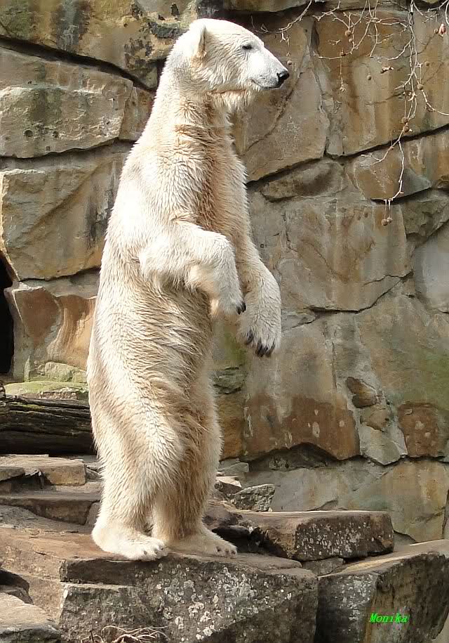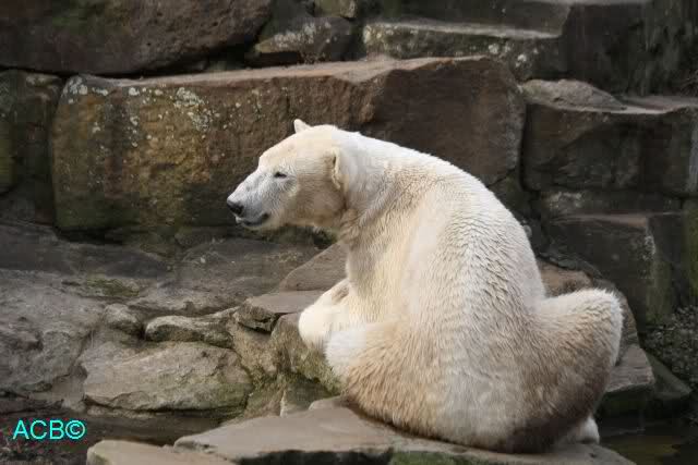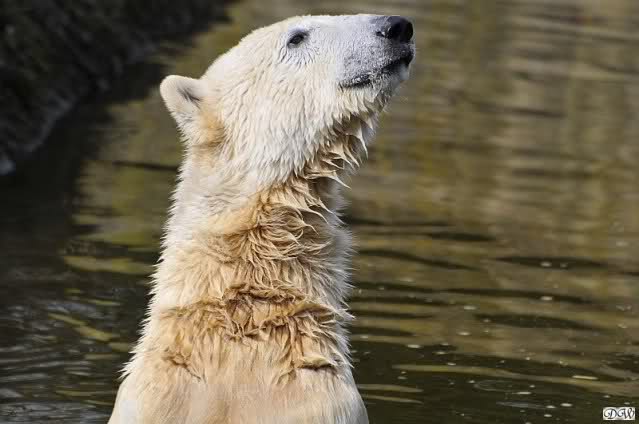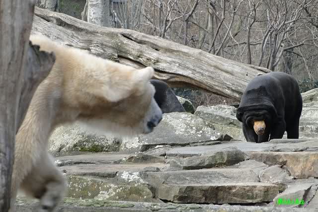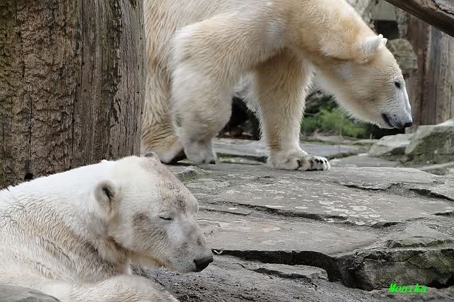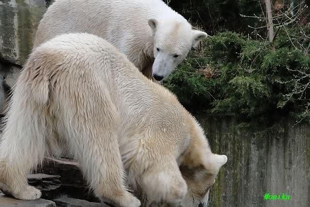 Nach der Fütterung war Gianna im Wasser, und Knut saß auf seinem "Esstisch" und wußte nicht so recht was er machen sollte.