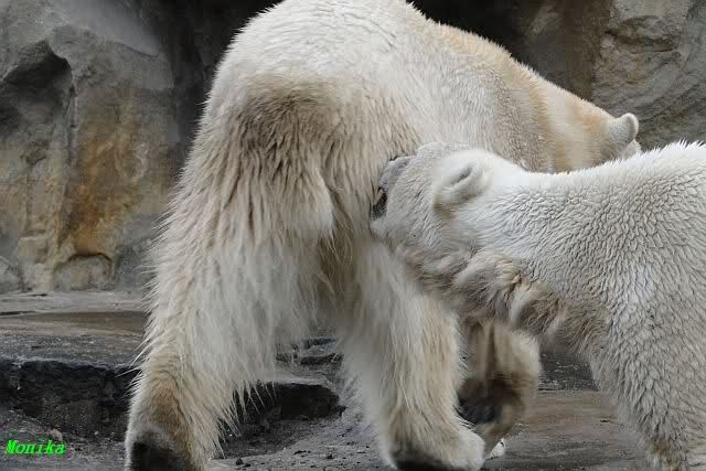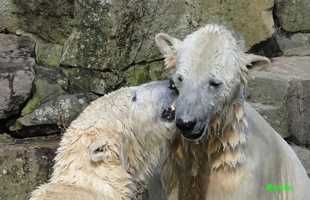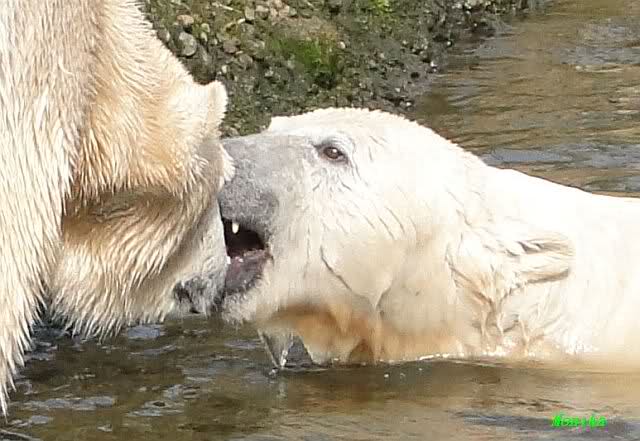 Knut schob eine "ruhige Kugel" bis Gianna dazu kam. Man sah wieder die Tapir-Lippe, und hinter ihrem Rücken machte er dann einen Scheinangriff.