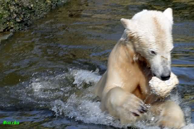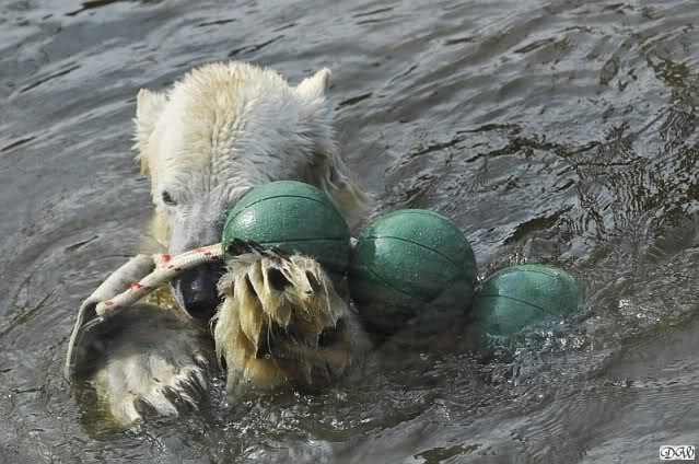 Gianna schleppte die Kugeln aus dem Wasser. Vielleicht hoffte sie, Knut würde mit ihr spielen.