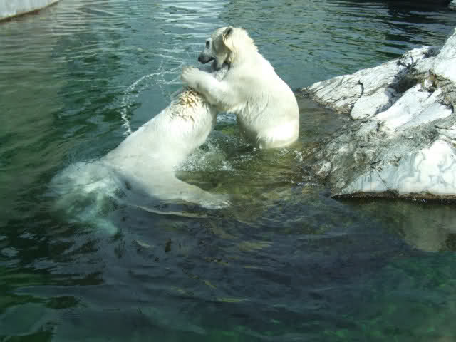 Deshalb sind Gudrun und ich dann einen Kaffee trinken gegangen und haben uns wieder mit den anderen getroffen. Wir haben später nochmal bei den Eisbären vorbeigeschaut, sie waren auch wieder draußen - aber so wild und unterhaltsam wie morgens ging es nicht mehr zu. Ich musste mich dann auch verabschieden, weil die Pflicht gerufen hat ... Gudrun und ihre Begleitung blieben noch, und ich kann Euch versprechen, dass Gudrun sehr schöne Bilder gemacht hat. Aber darauf müsst Ihr leider noch ein bisschen warten, bis Gudrun ihren Urlaub im Schwabenland beendet hat!