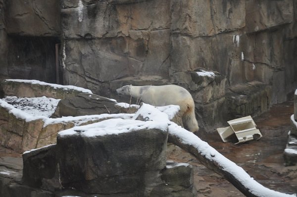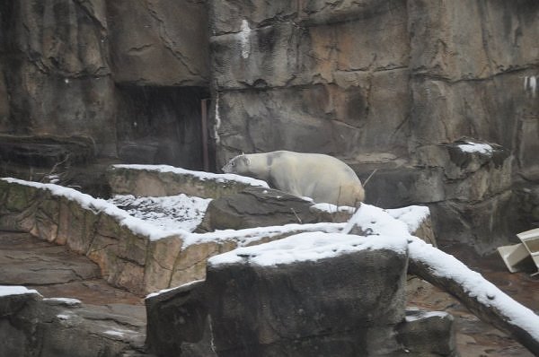Zuerst sind wir zu den Eisbären gegangen. Leider haben wir die Eisbärin nur kurz gesehen, sie hat sich umgedreht und im inneren Bereich verschwunden.