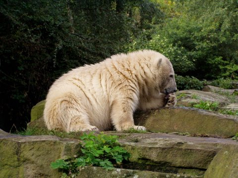 ...genauer gesagt, Knut nuckelt auf dem 2. und auf dem 9. Foto. Wahrscheinlich auch auf dem 4., bin nicht sicher...