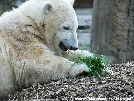 The pics of Knut chewing his "grass" is so sweet. The "grass" made Knut a sleeping beauty. Danke!