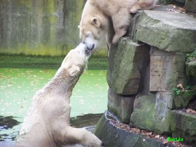 Thank you very much for the great pictures of last days: our beloved bears are very fine together, now. I think that it is very exciting seeing them playing together in their enclosure... I really would like to be there...