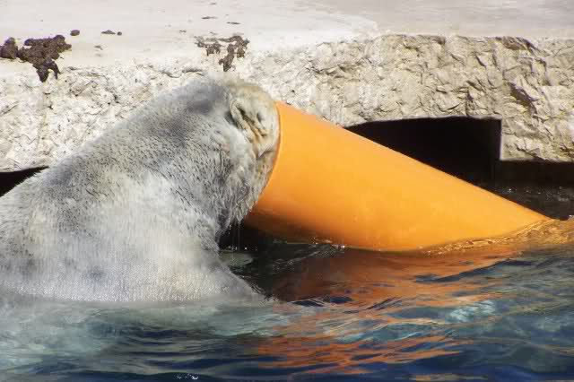 so macht man Eisbären glücklich, in dem man ihnen etwas zum spielen gibt, da Stofftiere nicht lange ihre Spielweise überleben würden muss man das Spielzeug eben im Baumarkt hohlen. :-))