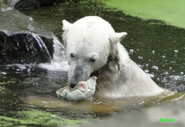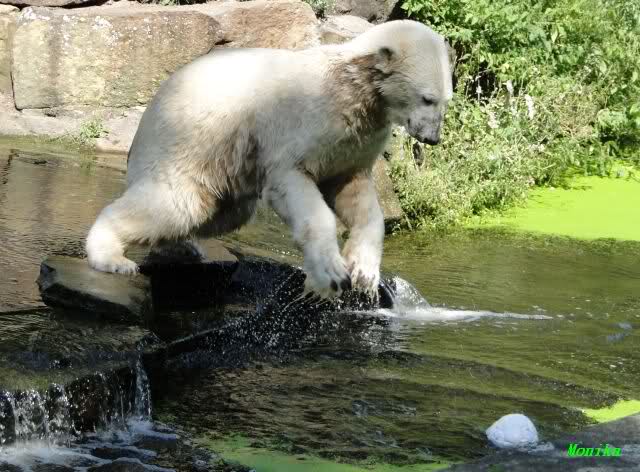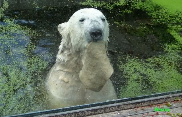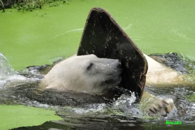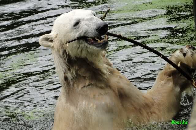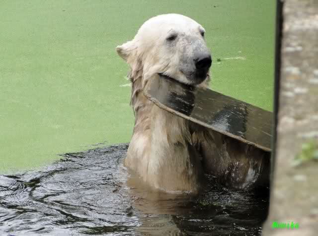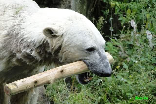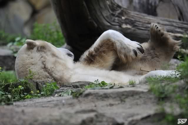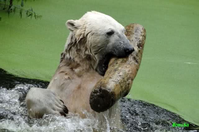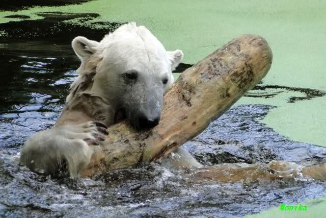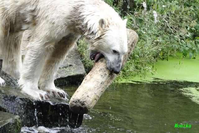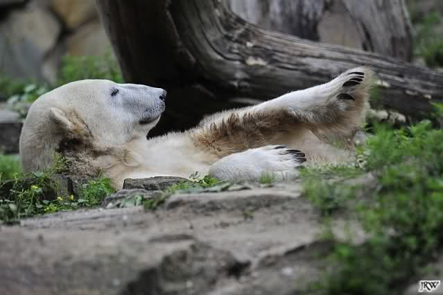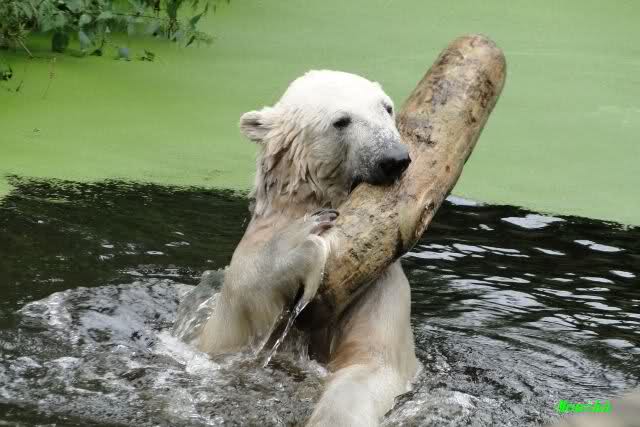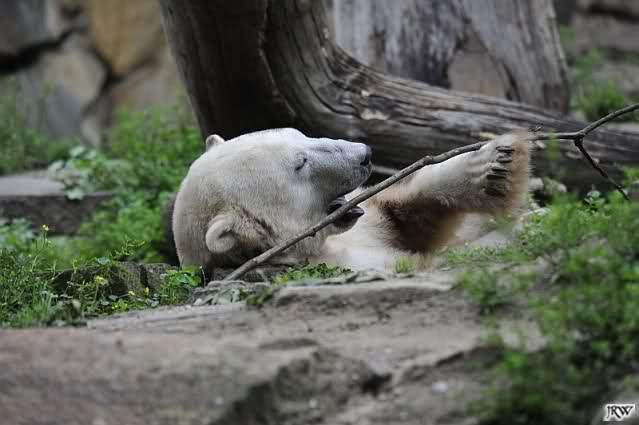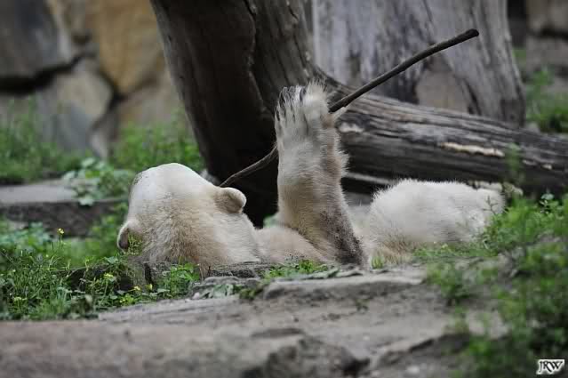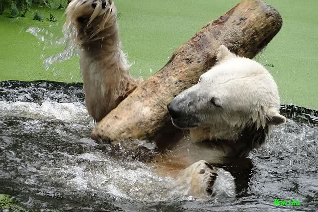 Interessant, das die großen Bären, welch eine Überraschung und auch Freude meinerseits, Baumstämme in ihrem Gehege haben. Große Ereignisse werfen ihre Schatten voraus. Und Knut lebt noch sein Junggesellendasein aus. Wenn der wüsste...