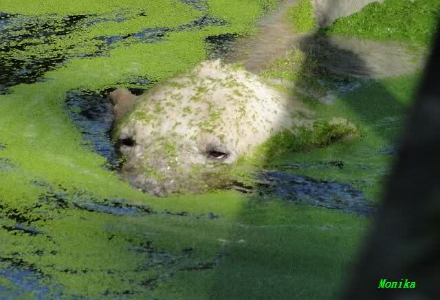Ich war heute mit einer Knutfreundin verabredet und zusammen schauten wir nochmal nach dem Mini-Flusspferd. Es zeigte prompt wieder sein Niedlich-Programm: auftauchen, Propelleröhrchen kreiseln lassen und wieder abtauchen.