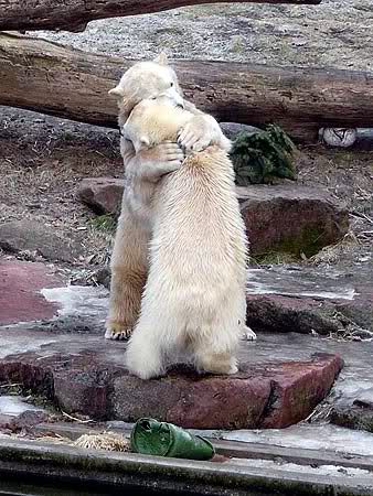 An dieser Stelle soll keine große Politik betrieben werden, doch unser fränkisch-russisches Eisbärenpaar zeigt heute, dass auch kleine Tierkinder wissen, wie man mal diplomatischer und mal weniger diplomatisch mit seinen Nachbarn umgeht, seine eigenen Interessen durchsetzt und dann doch noch gut miteinander auskommt. Ganz nach dem Motto "Du sollst nichts haben, was ich nicht auch habe." Und "wenn Du etwas von mir willst, dann sei gefälligst auch lieb zu mir." Aber von vorn: