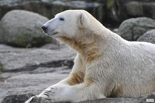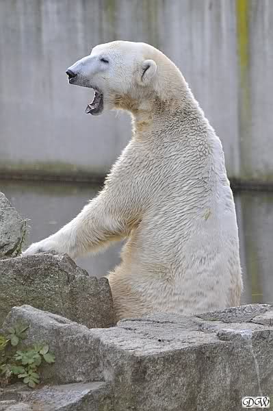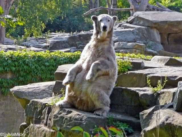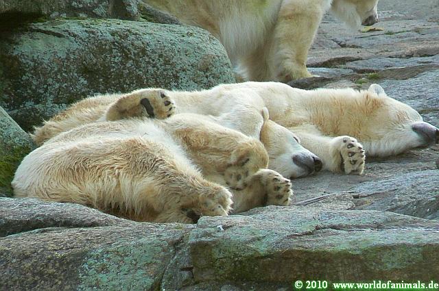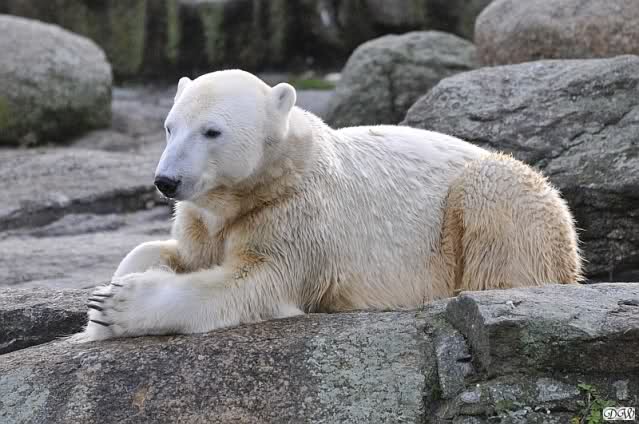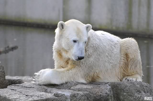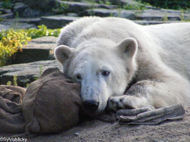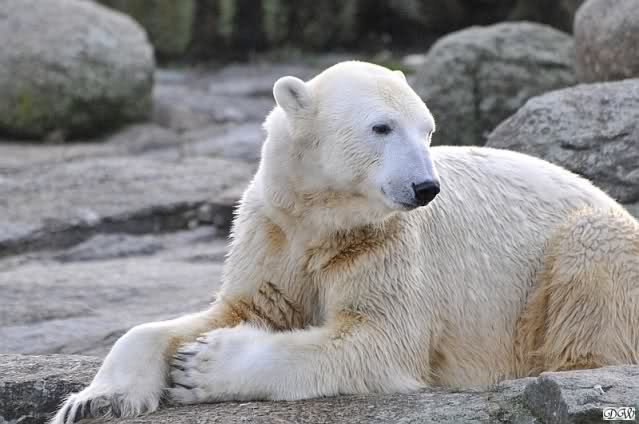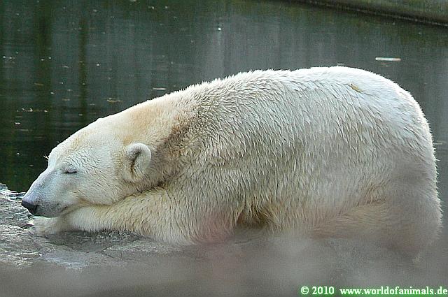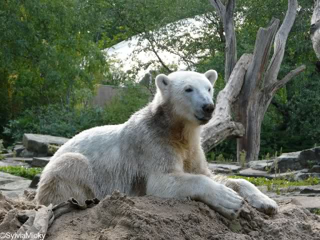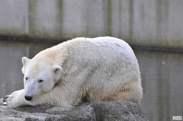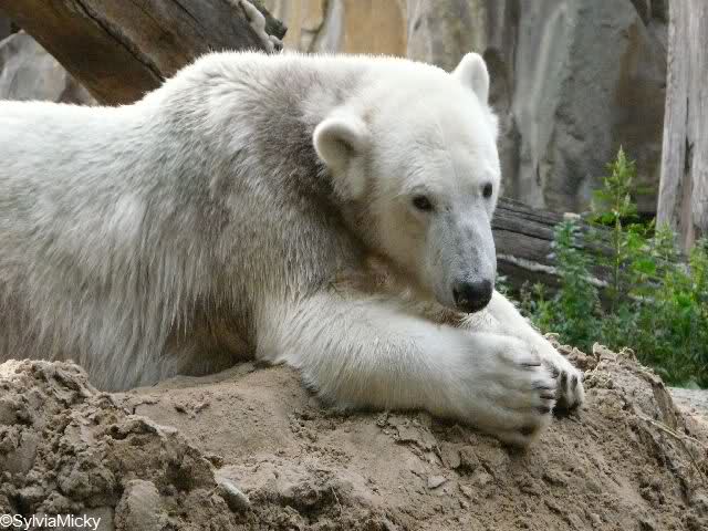 Auch ich war gegen 14 Uhr im Zoo. Knut ruhte in seiner vier Quadratmeter kleinen *Kleinraumwohnung*, die Damen ruhten verteilt auf dem Rest der Anlage.