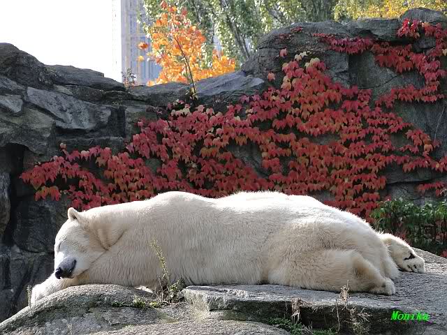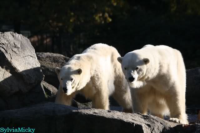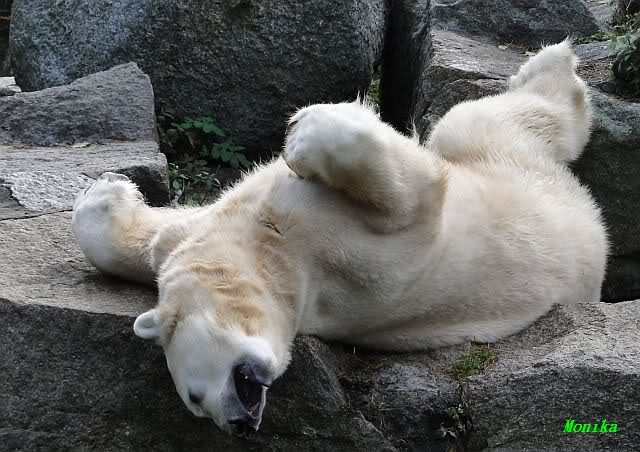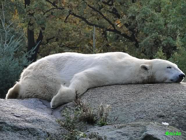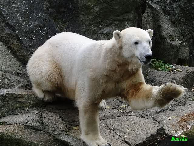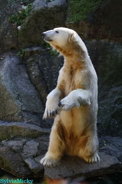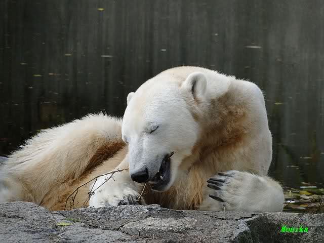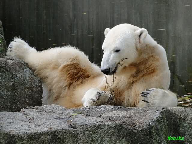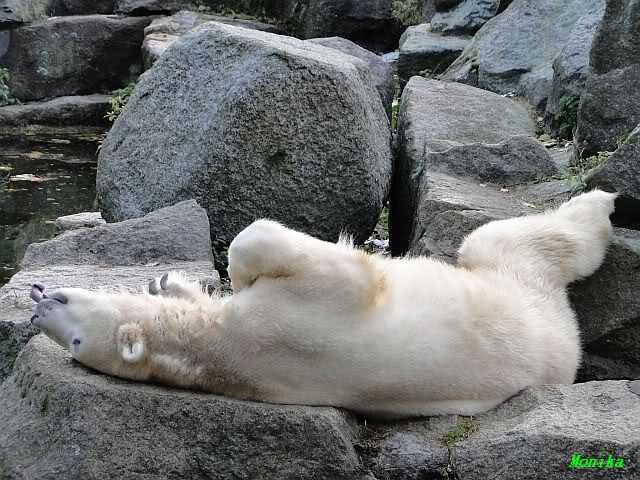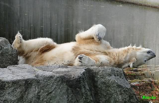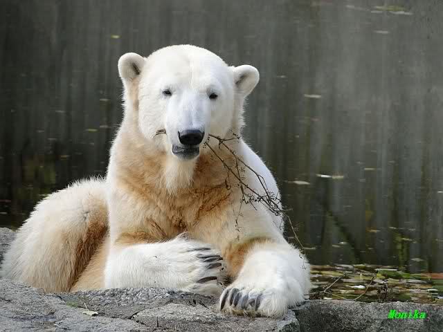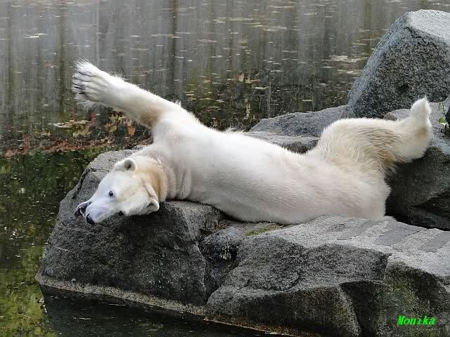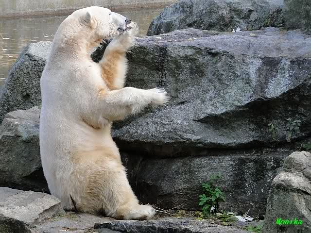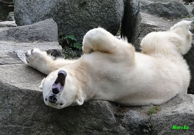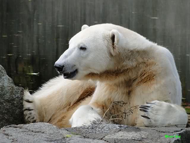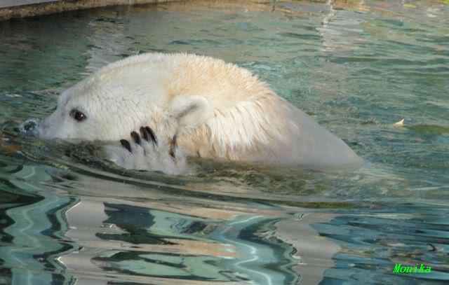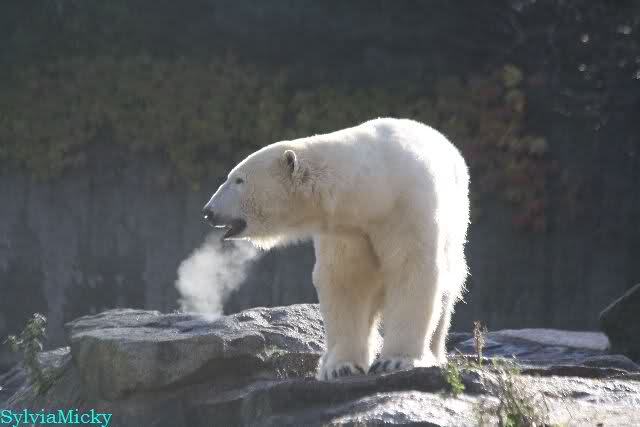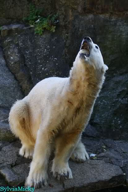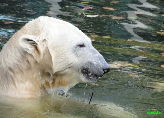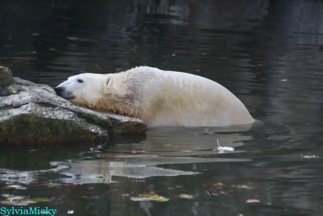 SylviaMicky, Monika - Thank you so much for showing us the latest photos of our boy. Knuti still has his baby face and looks so happy to meet the visitors. I was also happy to see he got a big salmon. Monika, your video makes me sleep better tonight. I love to hear the mantra 'Knut geht's gut'!!! I hope I can hear it every day!