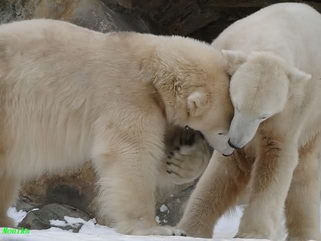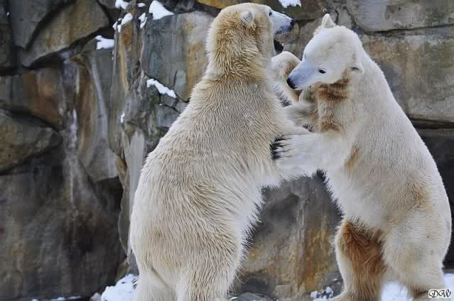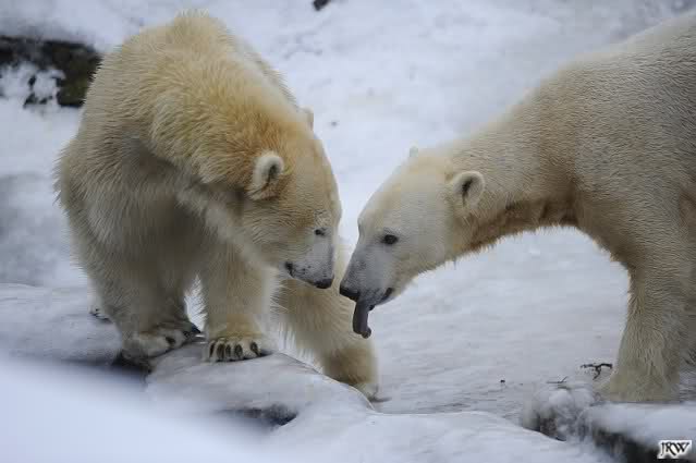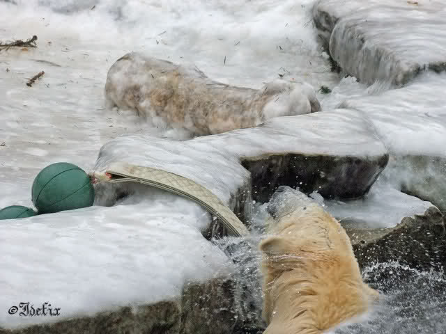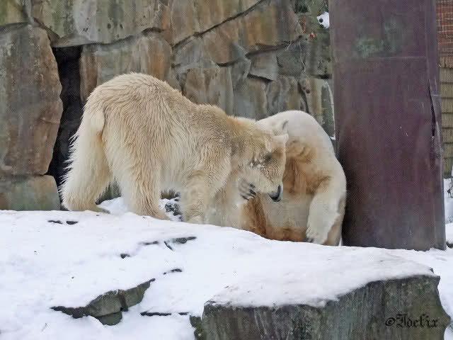 Da läuft ja was im Knut-Gehege - trotz weiter Entfernung spürt man die Energie und Freude der beiden Eisbären. Und dies alles nur dank Eurer "Fleiss-Arbeit".