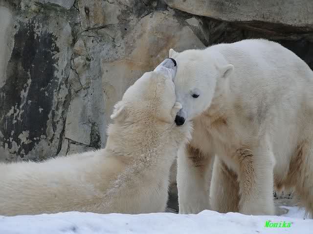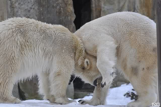 Bang fragen sich die Berliner Zoo-Besucher , ob unser Knut eigentlich schon ein Eisbär-Mann ist? Hartnäckig besteigt er seine Gespielen Gianna, die aber wenig begeistert zu sein scheint. Und warum? Mag sie keine Männer?