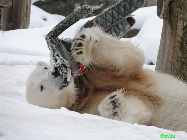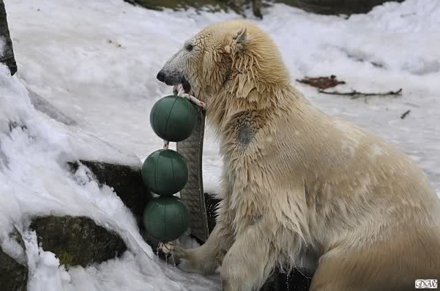 Gestern war ein grönländischer Schamane an Knuts Gehege und haute mächtig auf die Pauke. Ja, er trommelte und sang dazu. Eigentlich schön, aber nix für Bärchenohren. Guckt mal
