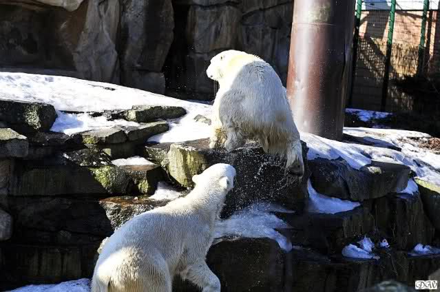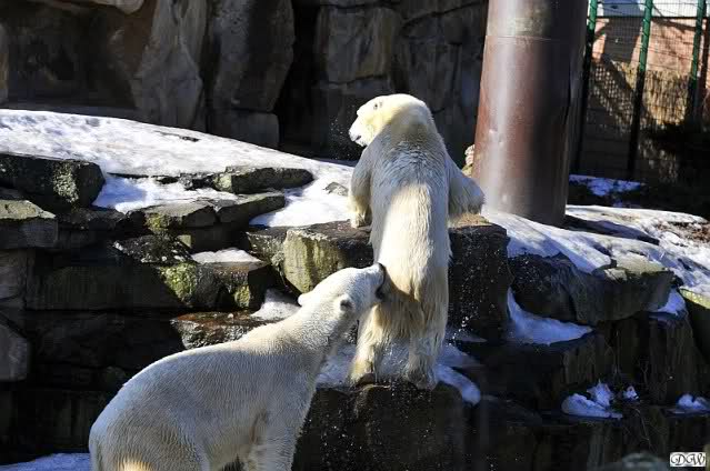 War der Nachmittag nun langweilig? Natürlich nicht, die Beiden sind immer schön anzusehen. Eine auswärtige Besucherin, die Knut regelmäßig im sechs Wochen-Zyklus besucht, sagte sie sei zufrieden ihn überhaupt zu sehen. Nachdem Gianna hineingelassen wurde, konnte auch Knut kaum die Zeit erwarten hineinzukommen.