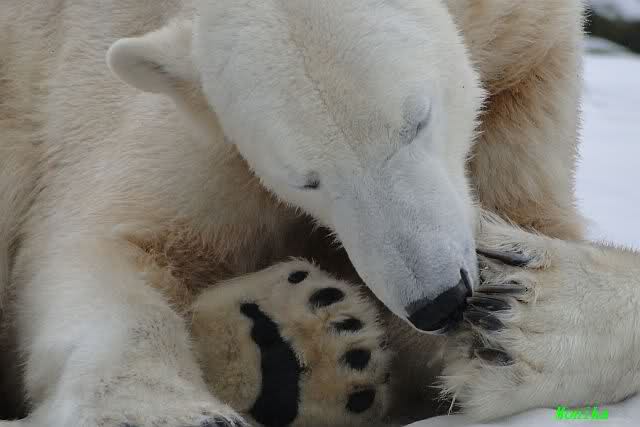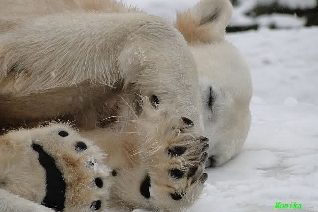 Da der Schnee nun langsam taut, und auch die Pfoten unserer beiden Schneebären dann wieder etwas schmuddeliger werden, habe ich noch ein paar Schnee - und Pfotenbilder von gestern.