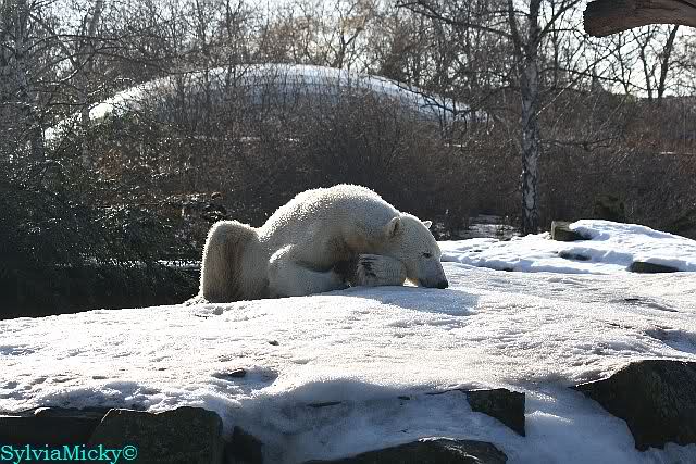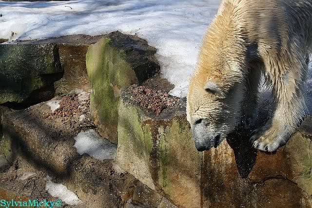 Strahlender Sonnenschein im Zoo. Dazu fast 10 Grad. Keine Handschuhe, keine kalten Füße. Überall strahlende Menschen und die Tiere waren heute fast alle draußen. Auch sie schienen sich sehr wohl zu fühlen. Es kamen wieder Knutfreunde, die wir wegen der vereisten Straßen lange nicht gesehen hatten.