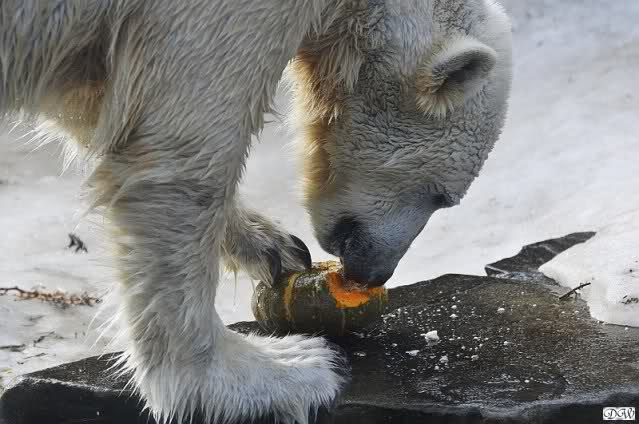 Patrizia, Deine Kürbisse wurden heute gefüttert. Knut bekam u.a. auch einen großen Lachs.