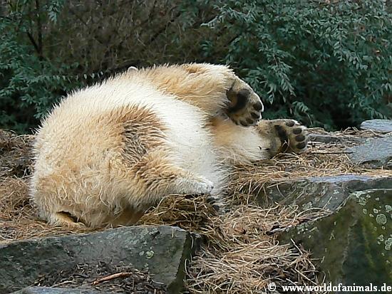 Vielen Dank für die schönen neuen Knuti-Fotos! Am besten gefällt mir das 2. von oben, auf dem Knut die Augen geschlossen hat. Ebenso schön ist das Foto, auf dem Knut auf dem Ast herumknabbert.