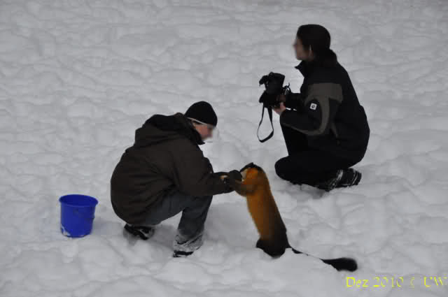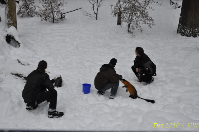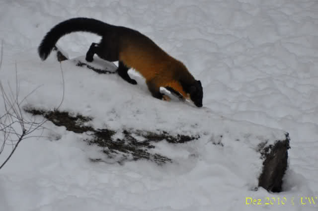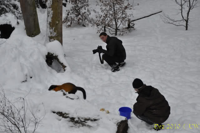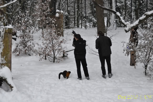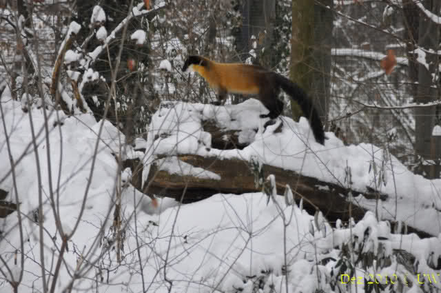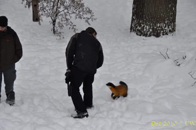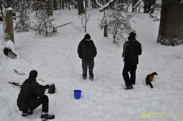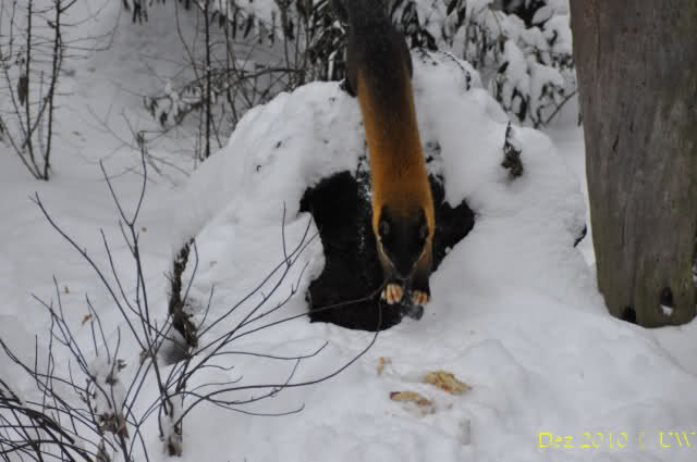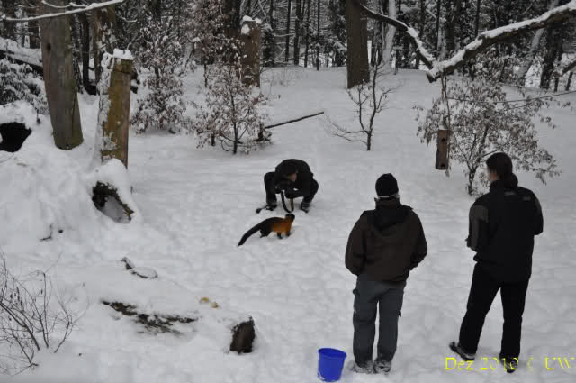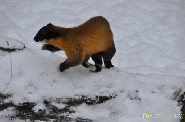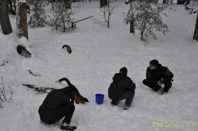 Der Mähnenwolf hat seine Anlage neben den Buntmardern