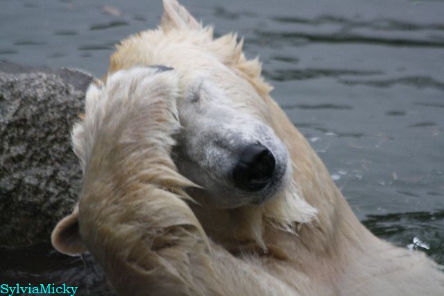 Hallo Mädels von der Spree, schön das bei Euch mal eine solche Dinge wie Gefühle, Lächeln und Gemüt bei Eisbären zur Sprache kommt. Vor Kurzem hatten wir ja in Wuppertal ja den Tag der offenen Türe. Gerade über diese Frage wurde bei unserer Führung ausführlich gesprochen und war auch auf ganz großes Interesse gestoßen. Die Pflegerin sagt im Grunde das gleiche aus wie Ihr hier im Blog. Das Erinnerungsvermögen von Eisbären ist noch nicht abschließend erforscht. Aber man kann sehr sicher sagen, dass Eisbären (gerade die im Zoo ) sehr wohl über Gefühle, Traurigkeit, Freude usw. empfinden können. Also können sie für Ihre Verhältnisse auch zufrieden aussehen was für uns wie lächseln wirkt. Das kann man auch bei Lars sehen und ich habe sehr viele Fotos mit der verschiedenen Gesichtsausdrücken. Die Pflegerin meinte auch, dass man gerade bei Lars morgens bei der ersten Fütterung sehr gut feststellen könne welche "Tagesform" vorhanden ist.
