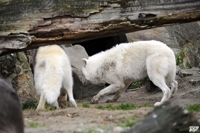 Die Wölfe hatten Langeweile und beschlossen Petzi zu ärgern, möglicherweise war ja in ihrer engen Höhle noch etwas Leckeres abzustauben ...